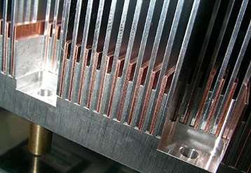 插齒作為傳統高功率散熱器生產工藝,傳統常用緊配鉚齒的方式進行,但這樣會造成配合間隙、齒松動等潛在的散熱風險,文軒熱能為解決這一難題,通過技術創新推出了多種介質連接新工藝,即采用高導熱環氧樹脂粘接、釬悍焊接、錫焊焊接等方式,大大提高散熱的可靠性與穩定性,避免存在的風險。