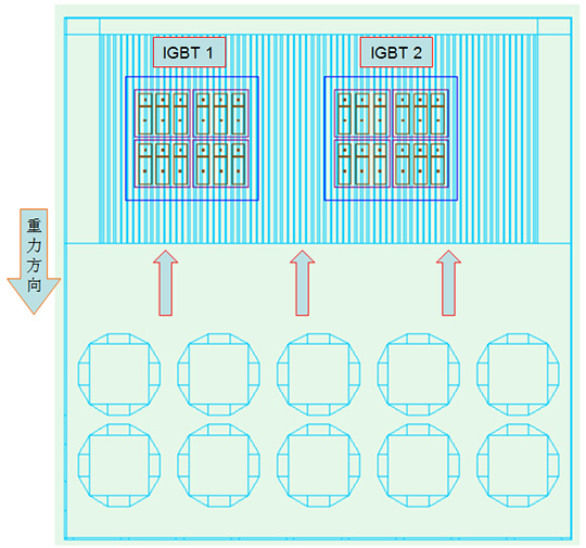 風電變流器通過對雙饋異步風力發電機的轉子進行勵磁,使得雙饋發電機的定子側輸出電壓的幅值、頻率和相位與電網相同,并且可根據需要進行有功和無功的獨立解耦控制。變流器控制雙饋異步風力發電機實現軟并網,減小并網沖擊電流對電機和電網造成的不利影響。可以說風電變流器是否穩定運行直接影響著電網的穩定性。如何保證風電變流器的正常運行,散熱是并不可少的一個環節。環境溫度為:25℃