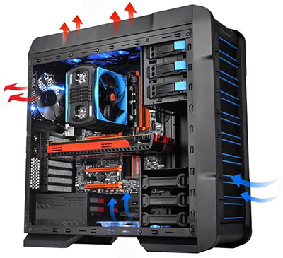 強(qiáng)制風(fēng)冷是用增加空氣的流動(dòng)作為媒介來實(shí)現(xiàn)熱源件的冷卻需要的散熱方式。通過加大熱源件的散熱表面積和加快單位時(shí)間內(nèi)空氣流過物體的速率兩種方法能快速的實(shí)現(xiàn)良好散熱性能。增加散熱面積可以在熱源件表面加裝散熱片來實(shí)現(xiàn),一般是把散熱片緊貼固定在熱源件上以獲得更高的散熱效能。增加空氣流動(dòng)可用風(fēng)扇(風(fēng)機(jī))來加強(qiáng)通風(fēng)、強(qiáng)化冷卻效果。大多數(shù)情況下,風(fēng)扇加上散熱片可以使冷卻效率大大提高。|